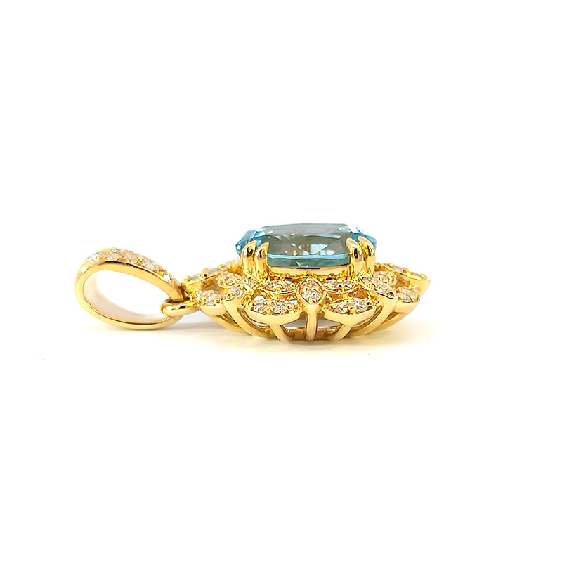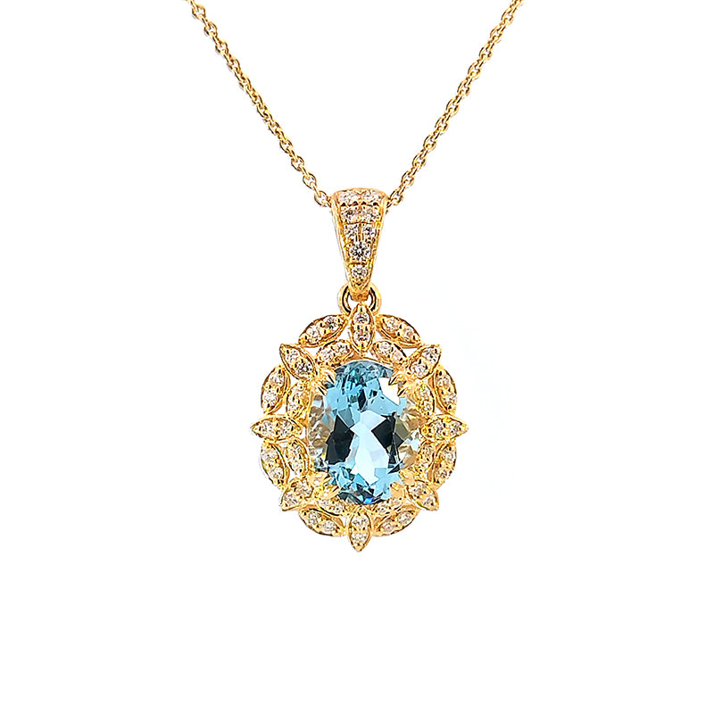 18ct Yellow Gold "Lilibet" Aquamarine and Diamond-set Pendant Only